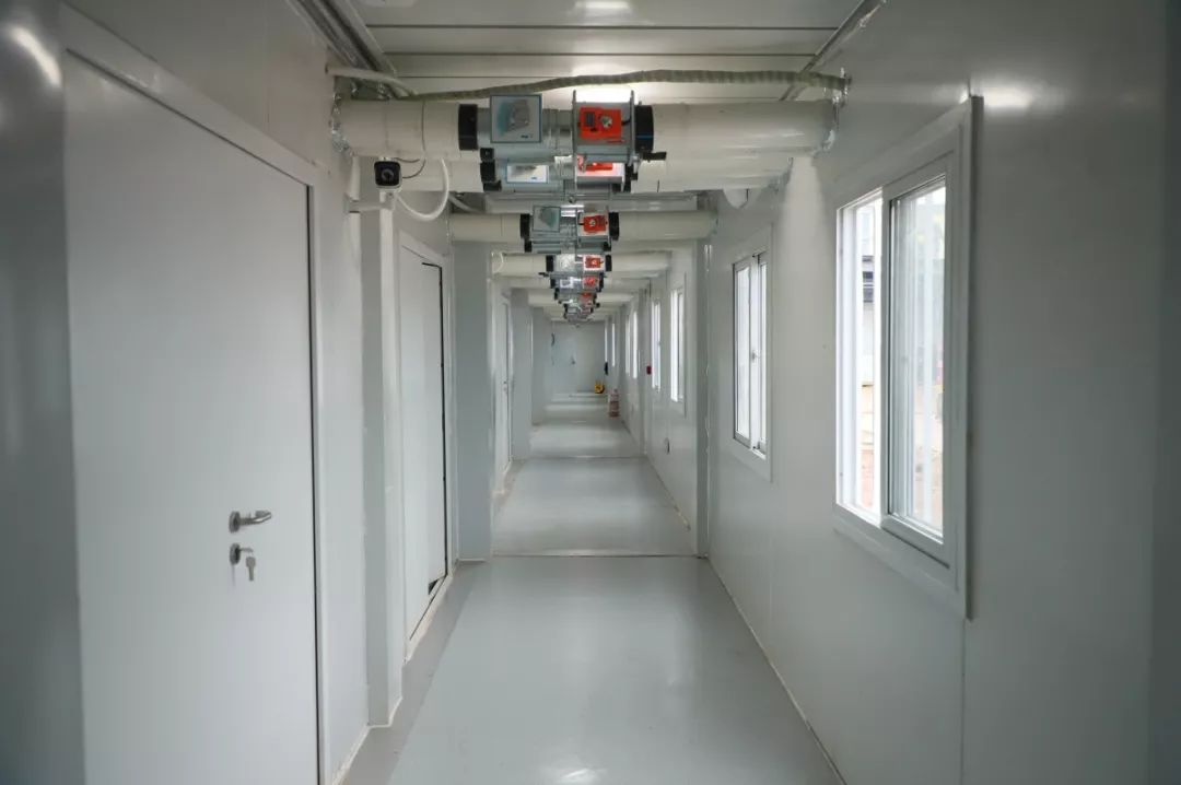 2月2日,隔離區(qū)完成吊裝1514間箱式板房。