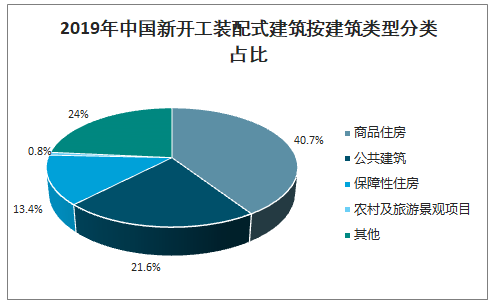 2019年中國(guó)新開(kāi)工裝配式建筑按建筑類型分類占比