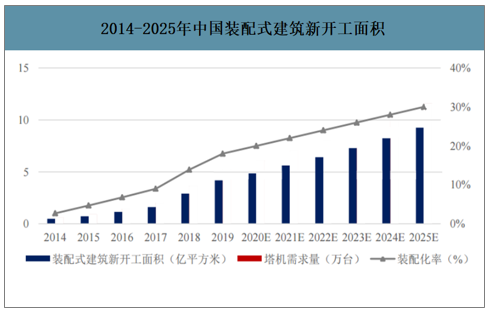 2014-2025年中國(guó)裝配式建筑新開(kāi)工面積