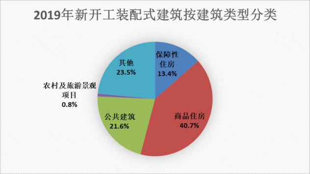 近年來,裝配式建筑在商品房中的應用逐步增多。2019年新開工裝配式建筑中,商品住房為1.7億m²,保障性住房0.6億m²,公共建筑0.9億m²,分別占新開工裝配式建筑的40.7%、14%和21%。在各地政策支持引領下,特別是將裝配式建筑建設要求列入控制性詳細規劃和土地出讓條件,有效推動了裝配式建筑的發展。