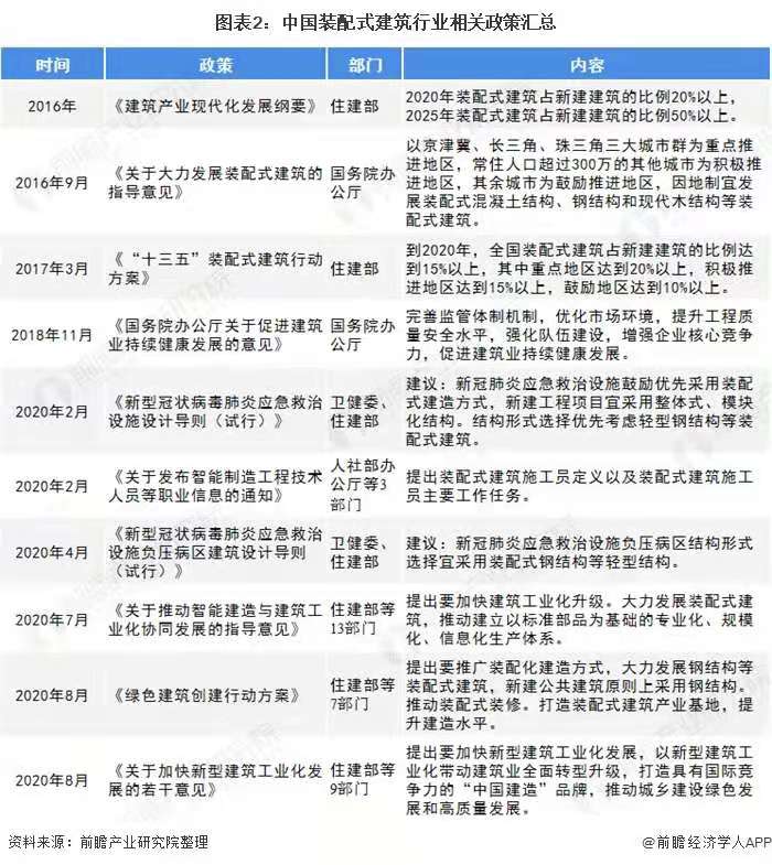 制造業(yè)轉(zhuǎn)型升級大背景下,中央層面持續(xù)出臺相關(guān)政策推進(jìn)裝配式建筑行業(yè)的發(fā)展。2016年9月國務(wù)院辦公廳發(fā)布《關(guān)于大力發(fā)展裝配式建筑的指導(dǎo)意見》中指出要多層面、多角度的發(fā)展裝配式建筑行業(yè)。近幾年,一系列政策的頒布,加快了我國裝配式建筑行業(yè)的發(fā)展。