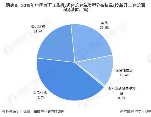 近年來,裝配式建筑在商品房中的應(yīng)用逐步增多。2019年新開工裝配式建筑中,商品住房為1.7億平方米,保障性住房0.6億平方米,公共建筑0.9億平方米,分別占新開工裝配式建筑的40.7%、14%和21%。在各地政策支持引領(lǐng)下,特別是將裝配式建筑建設(shè)要求列入控制性詳細(xì)規(guī)劃和土地出讓條件,有效推動了裝配式建筑的發(fā)展。
