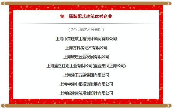為表彰在推動本市裝配式建筑建設中貢獻突出的企業、集體以及個人,引導本市裝配式建筑健康、穩妥的發展。上海市建設協會在上海市住房和城鄉建設管理委員會的指導下,開展了第一屆裝配式建筑優秀企業、先進集體、先進個人的評選活動。各裝配式建筑參建單位和從業人員把這次評優活動視作展示和學習示范項目成果、彰顯企業精神、員工素質的最佳平臺,努力工作,積極進取,開拓創新,有力推動了我市裝配式建筑示范工作的開展,涌現出許多先進集體和個人。為充分發揮評選活動鼓舞人、激勵人、凝聚人的作用,經評選活動工作小組推薦,評選活動領導小組暨上海市裝配式建筑推進工作聯席會議審議通過,現決定:
