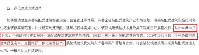 近日湖北省人民政府網公開了《省人民政府關于促進全省建筑業改革發展二十條意見》其中第4點“深化建造方式改革”中明確提出從 2018年10月1日起,全省政府投資工程項目滿足裝配式建筑技術條件的,50%以上項目采用裝配式建造方式。 2019年1月1日起,全省各城市新建商品住宅中,全面推行一體化裝修技術。