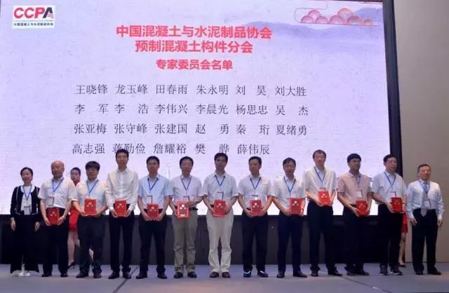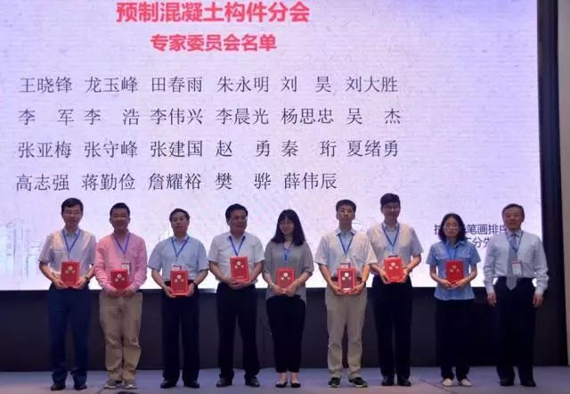 為鼓勵為預制混凝土行業創新做出突出貢獻的企業,繼2016年度全國房屋建筑預制混凝土構件十強企業評選后,分會又完成了2017年度預制混凝土行業十佳創新企業評選。分會理事長蔣勤儉、副理事長楊思忠、李晨光、吳杰、朱永明為十佳創新企業頒獎。