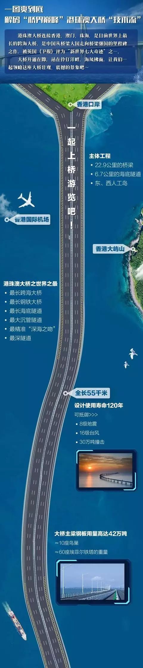 港珠澳大橋全長55公里,是世界上最長的跨海大橋。