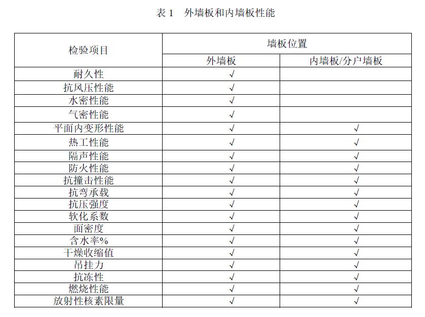 裝配式鋼結構建筑提倡采用非砌筑墻體,采用工廠預制墻板。根據圍護體系應用位置,分為外墻、內墻和分戶墻;根據圍護體系的構成形式和主要構成材料,分為預制混凝土墻板、輕鋼龍骨類復合墻板、輕質條板和夾心板等。外墻板和內墻板需分別滿足如表1所示性能。