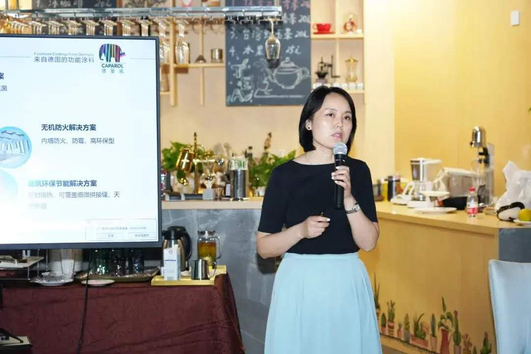 德愛威(DAW)工程服務平臺總監柳桂玲詳解“裝配式建筑涂料解決方案”。她表示,德愛威(DAW)對裝配式內外墻解決方案分為5個方向,彈性抗裂解決方案、防霉易清潔解決方案、耐污染高耐候解決方案、無機防火解決方案、建筑環保節能方案,可多維度、全方面解決裝配式建筑涂料方面的問題。
