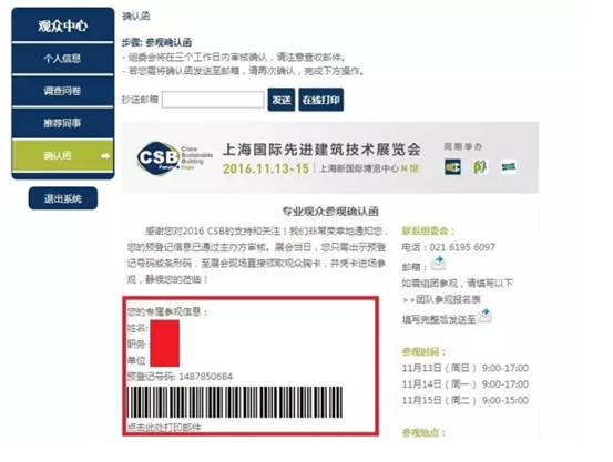 tips:收到以下確認郵件,預登記成功!請妥善保管您的預登記號碼。屆時,憑確認函至展會現場免費換取胸卡,參觀展會,11月13-15日我們不見不散!