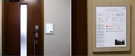 屋內(nèi)外安裝了 200 多個(gè)傳感器,相當(dāng)于平均每平方米有 1.5 個(gè)傳感器!這些傳感器監(jiān)測室外和室內(nèi)的溫度、濕度、風(fēng)速、風(fēng)向、照度、PM2.5、花粉、灰塵、紫外線,人員出入及活動(dòng)狀況等等。并通過門口的平板電腦顯示所有的環(huán)境參數(shù)。