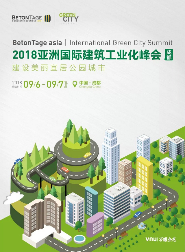 BetonTage系列論壇-“2018亞洲國際建筑工業(yè)化峰會(huì)(成都)(英:BetonTage asia · GREENCITY)”,將于2018年9月6-7日在成都天府新區(qū)秦皇假日酒店隆重召開。本次峰會(huì)由歐洲荷蘭皇家集團(tuán)和歐洲混凝土峰會(huì)組委會(huì)主辦,四川天府新區(qū)管理委員會(huì)協(xié)辦。峰會(huì)將圍繞“建設(shè)美麗宜居公園城市”這一主題,結(jié)合四川天府新區(qū)發(fā)展方向,以國際綠色城市為出發(fā)點(diǎn),聚集國內(nèi)外專家深入探討從城市規(guī)劃、建筑設(shè)計(jì)到建筑工業(yè)化、數(shù)字城市與智慧建筑領(lǐng)域的發(fā)展和應(yīng)用。