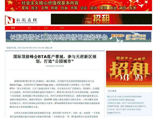 此次會議不僅受到四川當地政府部門的高度關注及大力支持,更吸引了全國各門戶網站、行業媒體及四川當地媒體的大力報道。BTA成都開幕之際,感謝各界媒體對BTA成都的關注及支持!