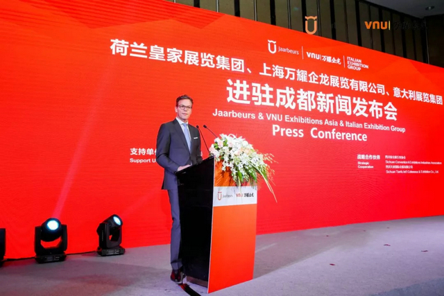 2018年8月29日,荷蘭皇家展覽集團(Jaarbeurs)、上海萬耀企龍展覽有限公司(VNU)、意大利展覽集團(IEG)在成都環(huán)球中心召開新聞發(fā)布會,宣布進駐成都以及一系列知名會展項目落戶的消息。