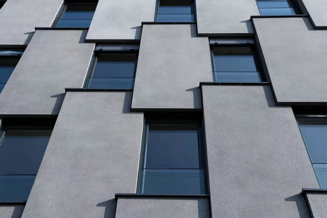 澄筑的外墻立面可通過彩色混凝土、反打磚石、造型硅膠模具、露骨料和印刷混凝土等工藝經濟性地實現豐富的極具藝術性的表面色彩、肌理、造型和質感。